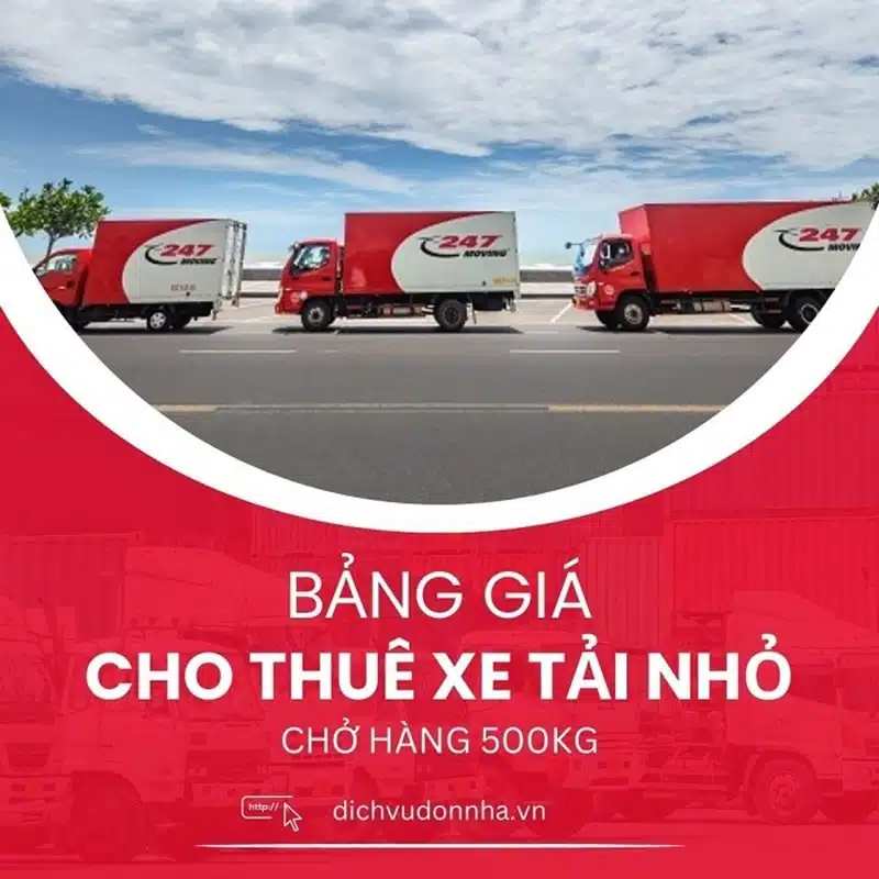 Báo giá cho thuê xe tải nhỏ chở hàng 500kg, chuyển nhà, chuyển văn phòng tại Tp.HCM đang được cung cấp bởi Công ty vận tải 247Express. Với nhiều tiện ích mà dịch vụ cho thuê xe tải nhỏ chở hàng giá rẻ mang lại cho khách hàng thuận tiện hơn mỗi khi chuyển dọn hàng hóa, tài sản của mình.
