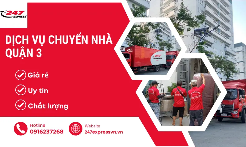 Để giúp bạn tránh rủi ro khi gặp phải đơn vị kém chất lượng, 247Express – một trong những thương hiệu chuyển nhà uy tín tại TP.HCM – xin gửi đến bạn thông tin chi tiết về dịch vụ chuyển nhà giá tốt Quận 3 để tham khảo trước khi lựa chọn.
