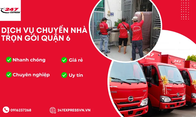 Với hơn 10 năm hoạt động trong lĩnh vực vận chuyển, 247Express luôn đặt chất lượng dịch vụ lên hàng đầu và không ngừng cải thiện quy trình làm việc để mang đến trải nghiệm tốt nhất cho khách hàng tại TP.HCM. Riêng dịch vụ chuyển nhà tại Quận 6, 247Express đã nhận được nhiều đánh giá tích cực nhờ phong cách phục vụ chuyên nghiệp và sự cẩn trọng trong từng khâu thực hiện.